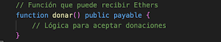 fallback() external payable: Se ejecuta cuando ninguna otra función coincide con las existentes en el contrato, incluso la función receive; esta función es opcionalmente payable, lo que significa que puede recibir Ethers.